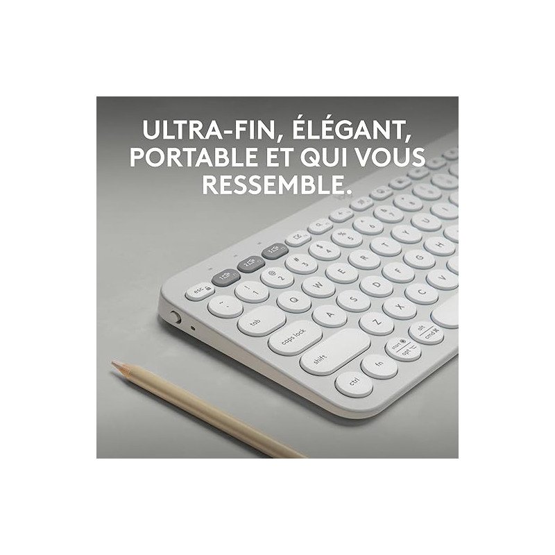 Logitech Pebble Keys 2 K380s clavier sans fil Bluetooth multidispositif, raccourcis personnalisables, fin et portable, Easy-Switch pour Windows, macOS, iPadOS, Android, ChromeOS, FR AZERTY, Blanc