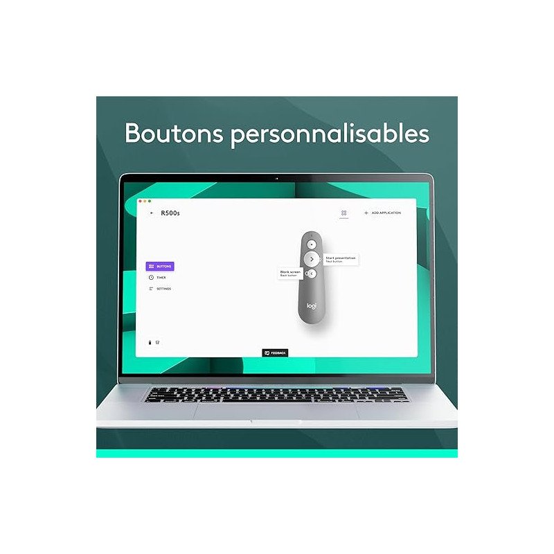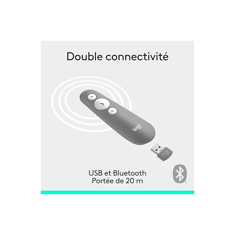 Logitech R500s de classe 1 Bluetooth et USB Télécommande de présentation laser/ Télécommande de présentation - Compatibilité universelle, portée de 20 m, personnalisable - Gris clair