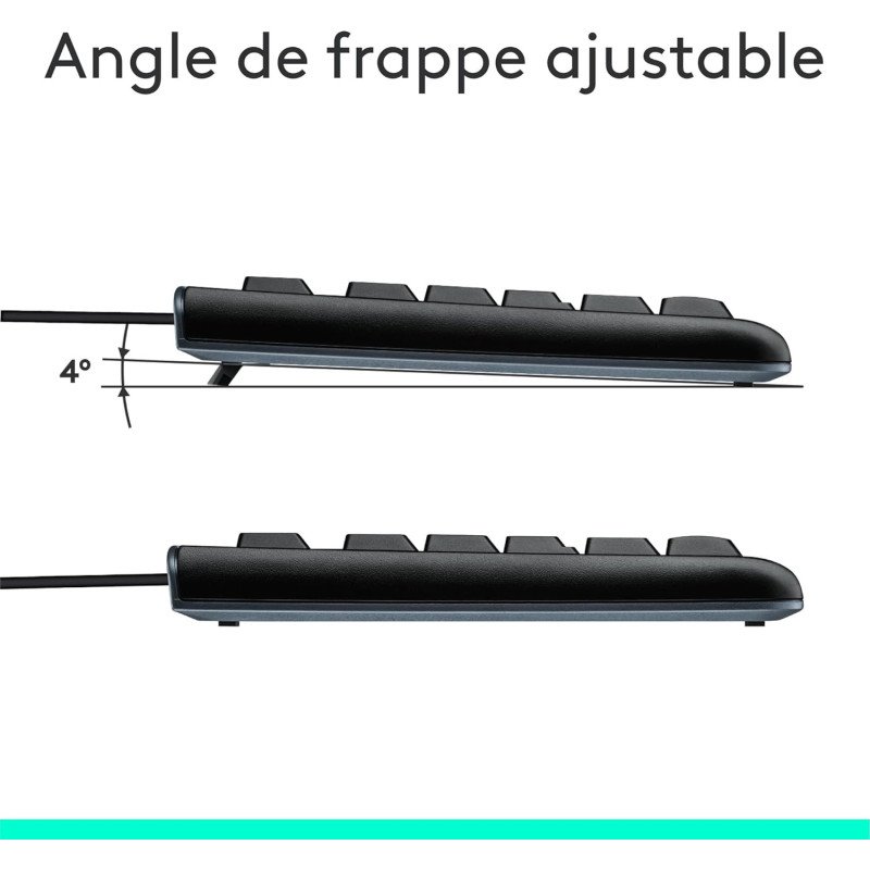 Fiable et Durable : Clavier USB avec une barre d'espace incurvée design étanche(2), touches durables qui peuvent supporter 10 millions de frappes, pieds robustes et ajustables