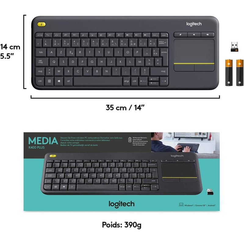 Logitech K400 Plus Clavier Sans Fil Touch TV Avec Contrôle Média et Pavé Tactile, Clavier Pan Nordique QWERTY - Noir