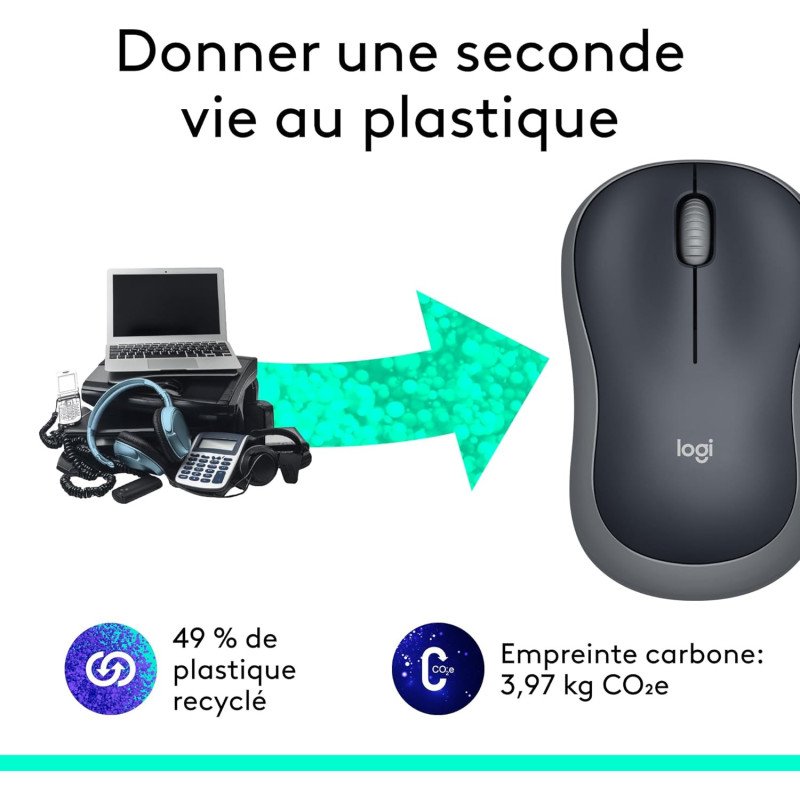 - Passez à la Souris Sans Fil Logitech M235 : Plus de confort avec les côtés en caoutchouc de la M235, l'appairage multi-périphérique, le récepteur USB et la lumière indiquant le niveau de pile