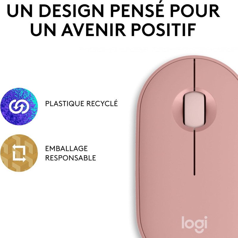 Logitech Pebble Mouse 2 M350s fine sans fil Bluetooth, portable, légère, boutons personnalisables, clics discrets, Easy-Switch Windows/macOS/iPadOS/Android/ChromeOS - Rose
