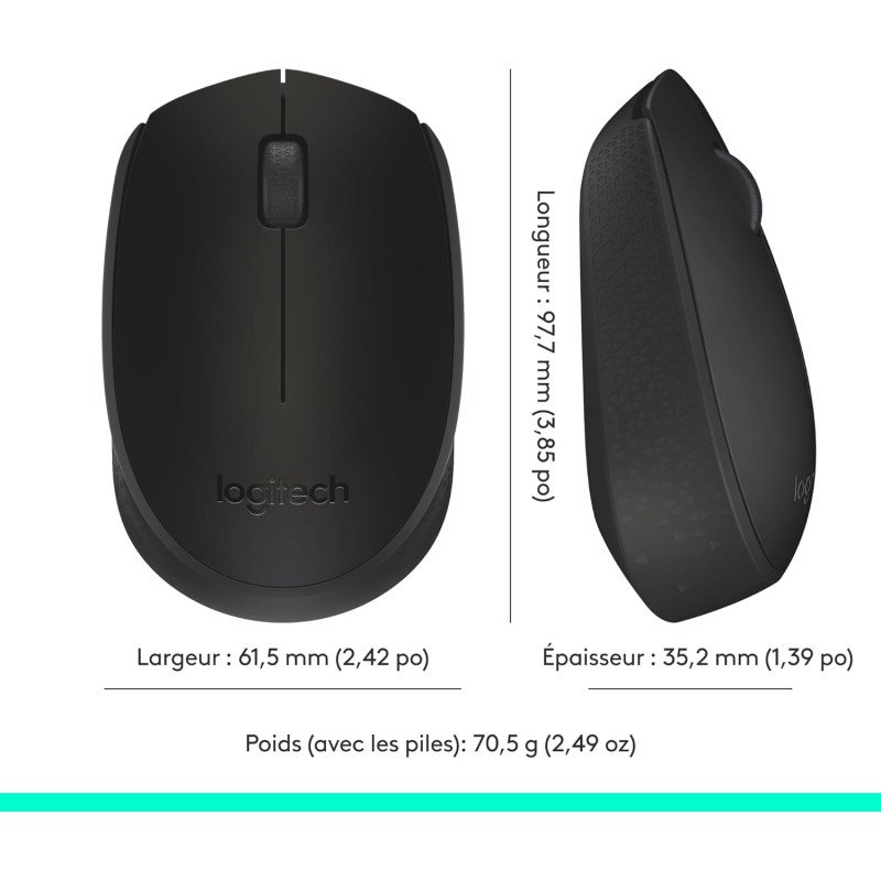 - Navigation Facile : Grâce au défilement contrôlé ligne par ligne et au suivi optique, la souris Logitech M171 offre un contrôle fluide et précis du curseur sur presque toutes les surfaces