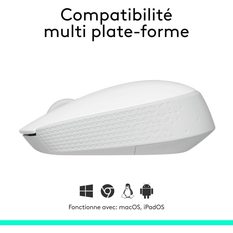 Logitech M171 Souris Sans Fil pour PC, Mac, Ordinateur portable, 2,4 GHz avec Mini-récepteur USB, Suivi Optique, Autonomie de Piles de 12 mois, Ambidextre - Blanc